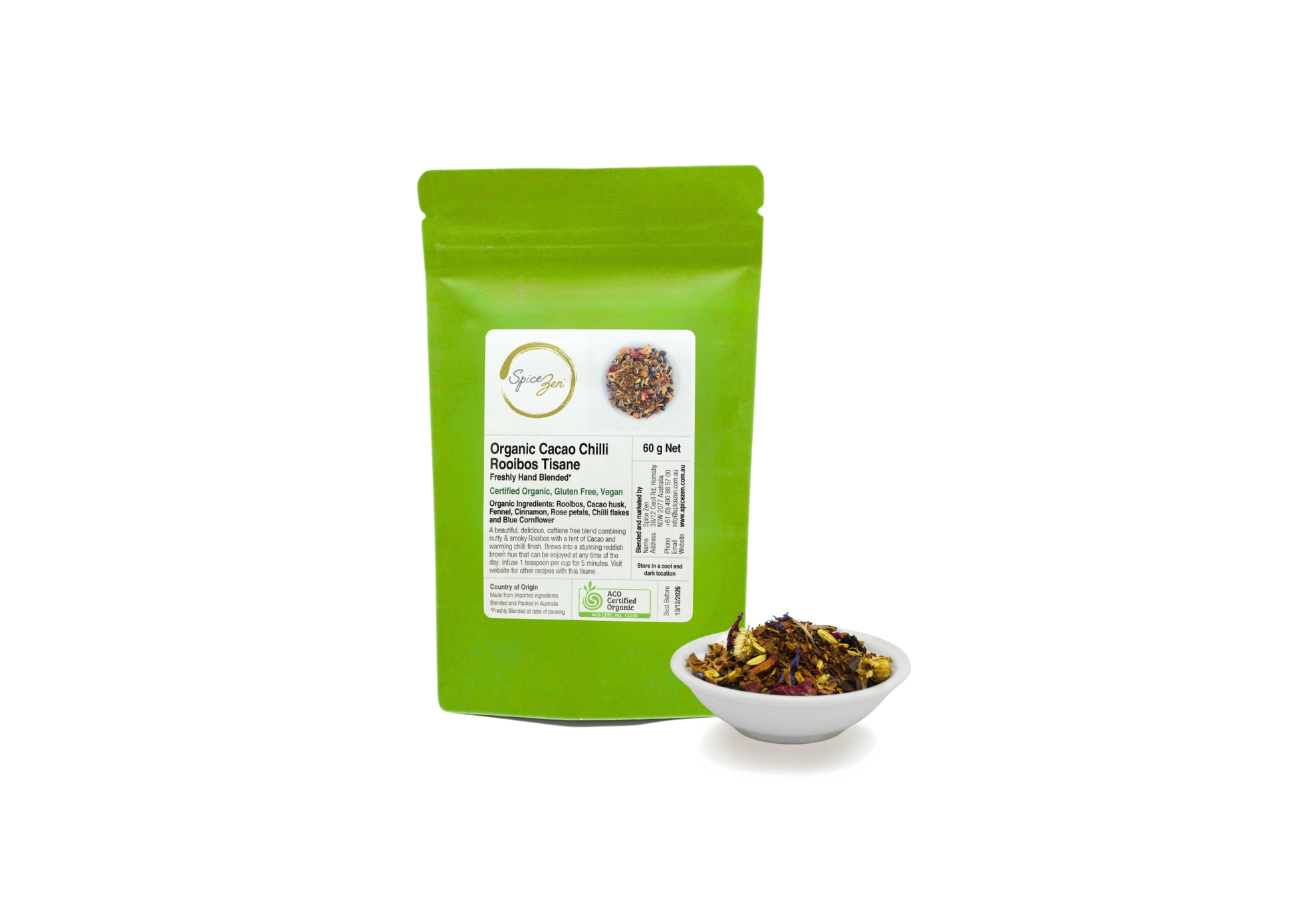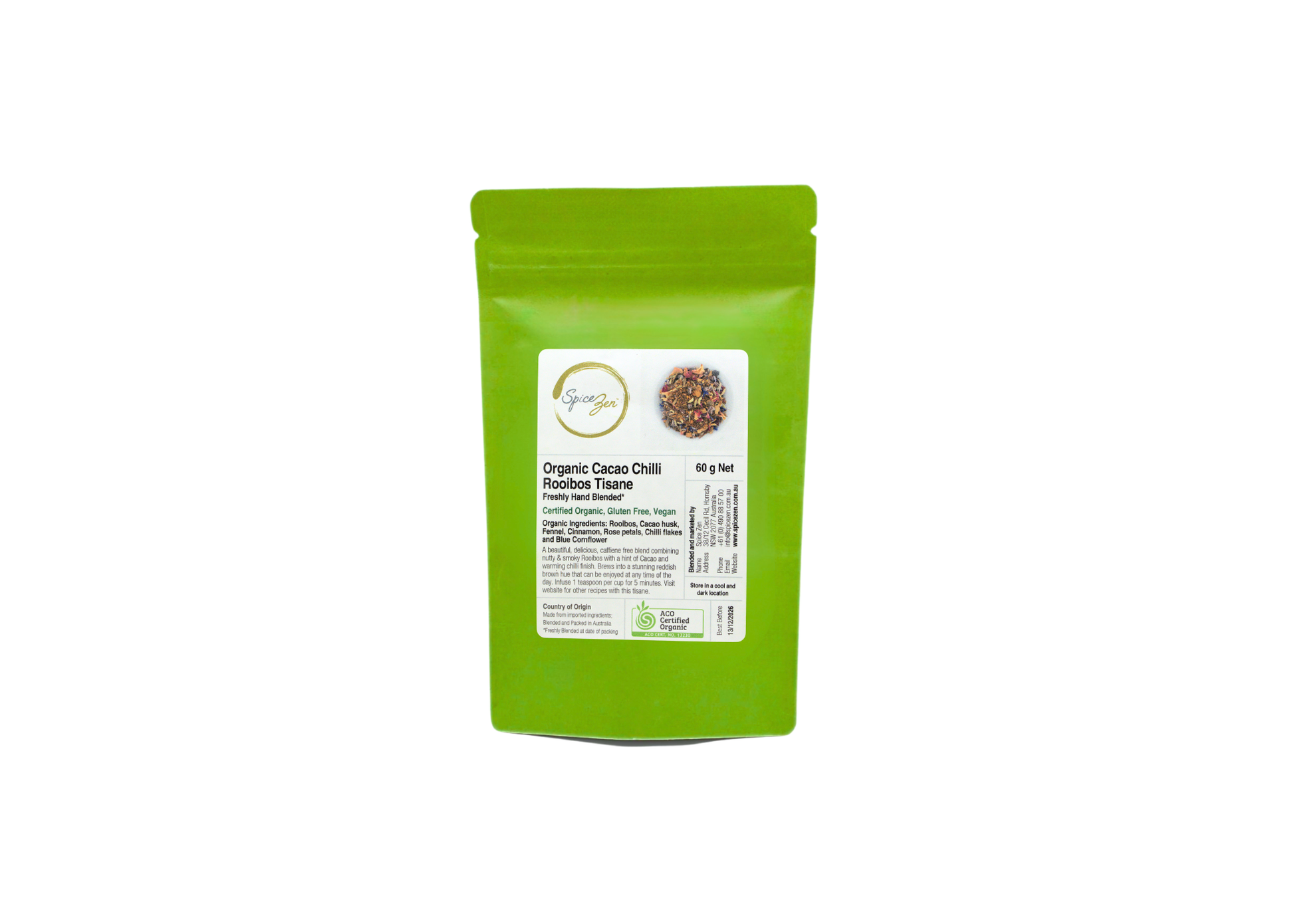 Packed in a biodegradable green stand-up pouch with a protective inner foil lining to preserve aroma, freshness, and purity. Store in a cool, dry place away from direct light.
