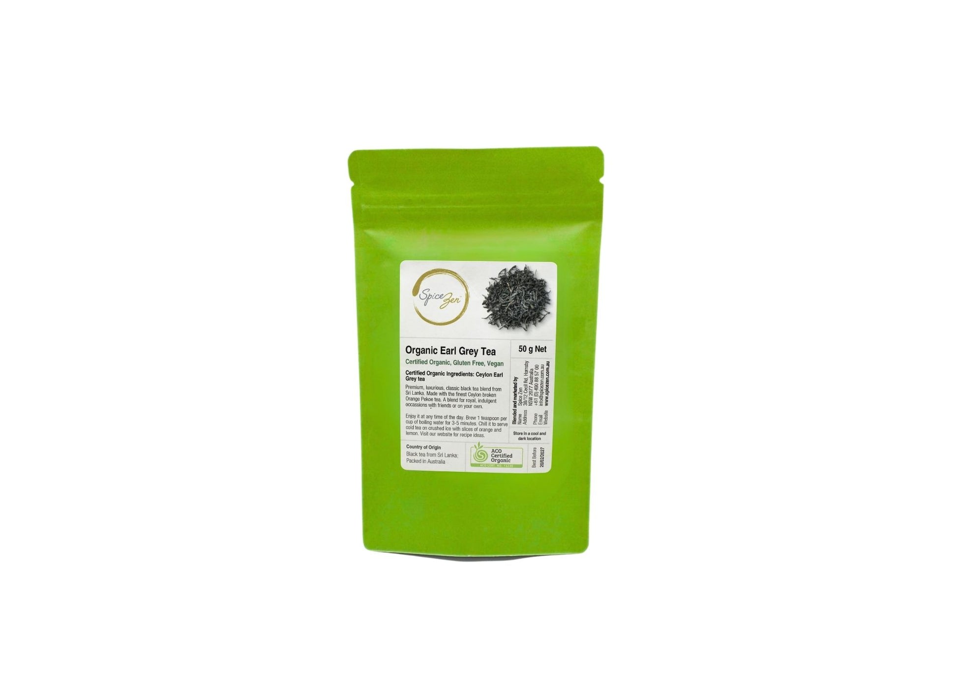 Packed in a biodegradable resealable green stand-up pouch with a protective inner foil lining to preserve aroma and freshness.