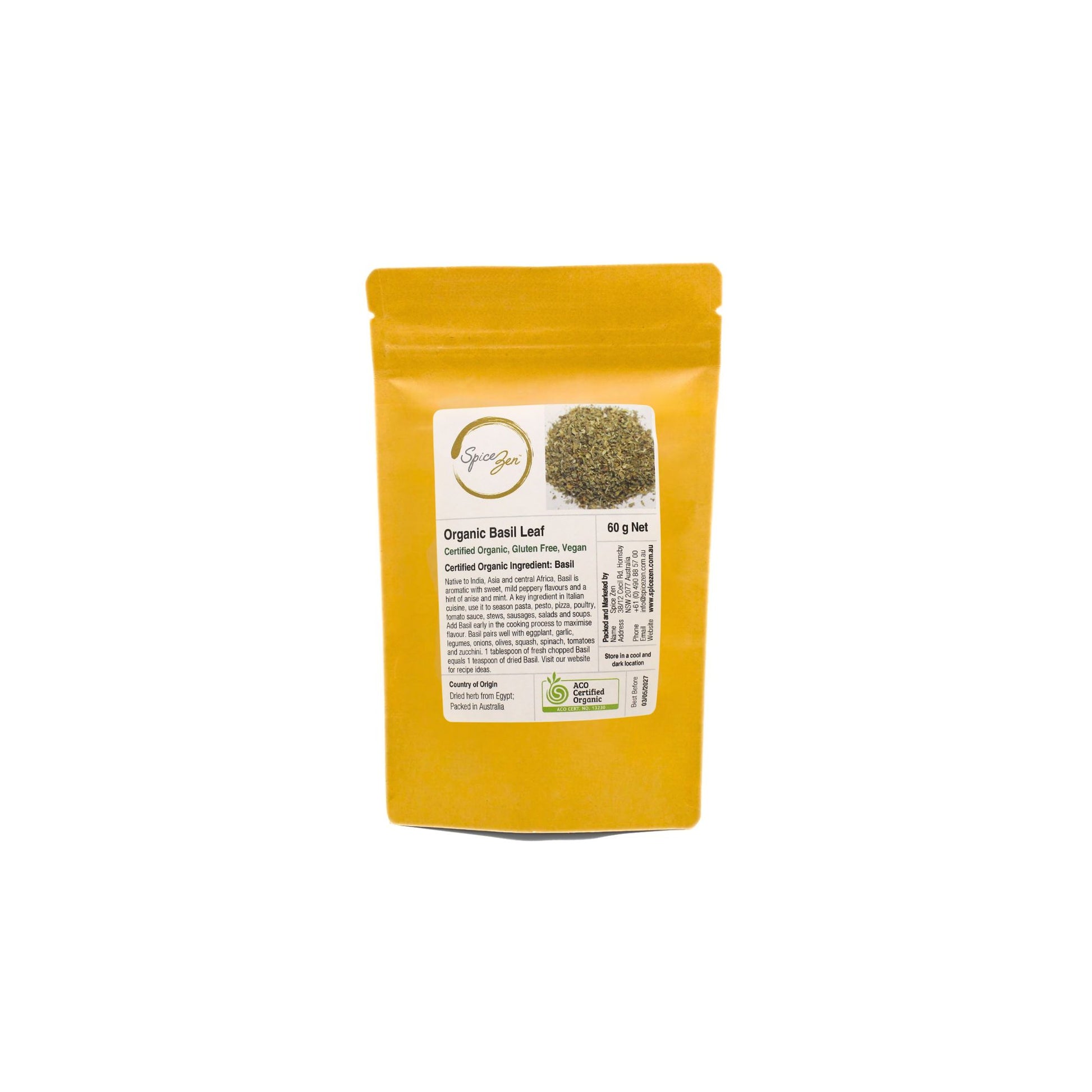 Member of the mint family and native to India, Asia, and Central Africa, dried Basil has travelled the world to become the soul of Mediterranean and Italian cooking. Spice Zen Certified Organic Dried Basil Leaf is crushed, aromatic, and full of sweet-herbal flavour with gentle peppery and anise notes.
