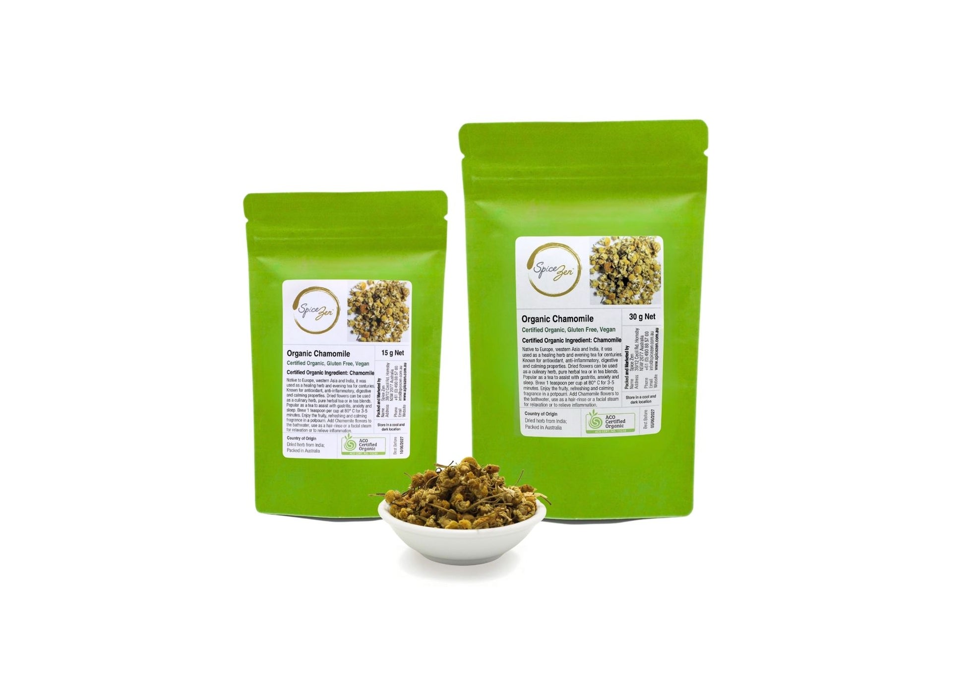 Spice Zen’s certified organic chamomile blossoms are sourced from renowned chamomile-growing regions known for producing premium flowers with bright yellow centres, rich aroma, and high essential-oil content. Each dried bloom carries a delicate floral sweetness, subtle fruitiness, and the soft herbaceous warmth that makes chamomile such a beloved botanical.