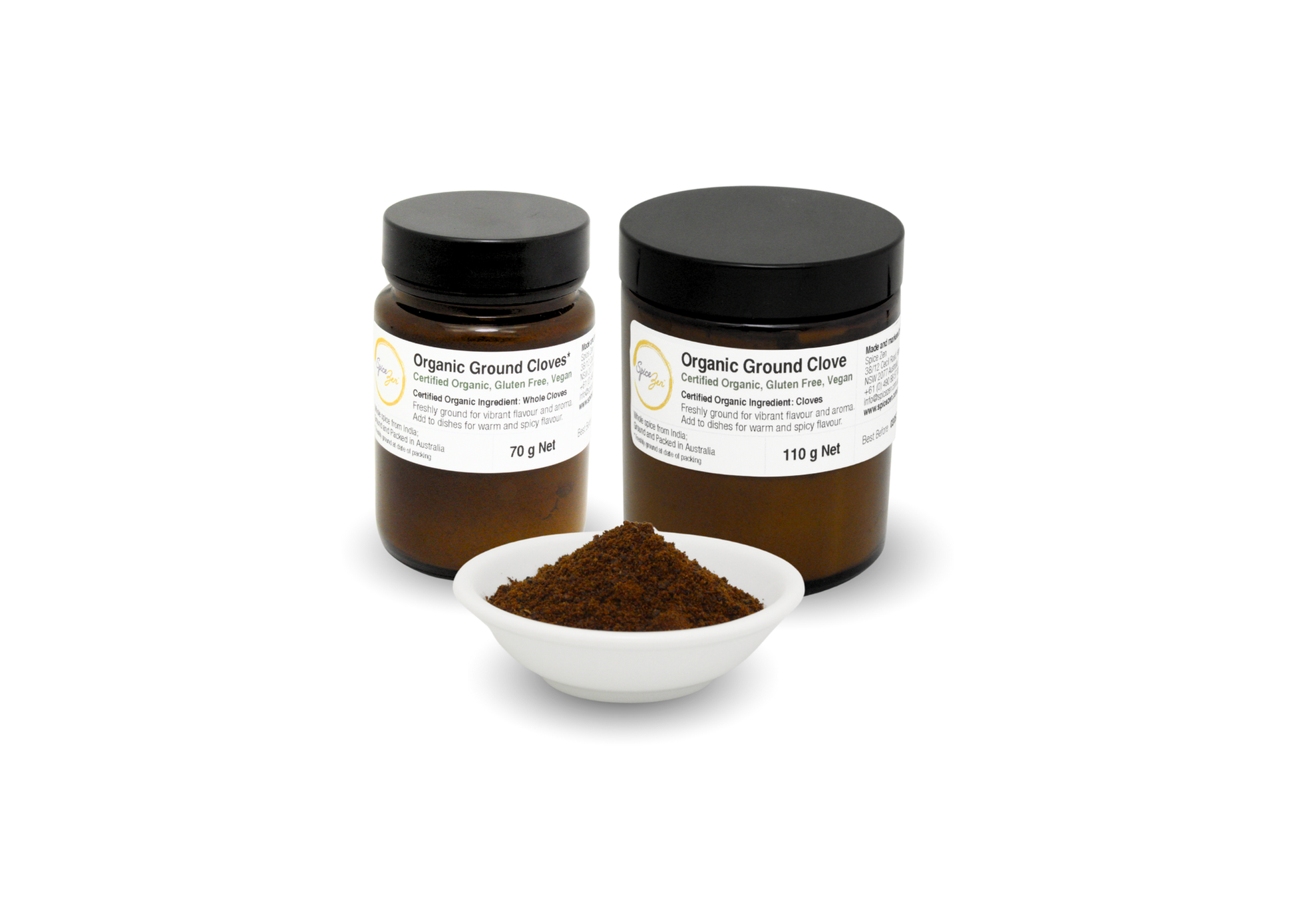Our certified organic whole cloves are freshly ground in small batches at our gluten-free Sydney facility. Grinding cloves fresh ensures a deeper, brighter, more aromatic flavour than pre-ground commercial options, with notes of warm spice, citrus, resin and soft peppery heat. Once ground, the spice is immediately packed in recyclable amber glass jars to protect its volatile aromatics.