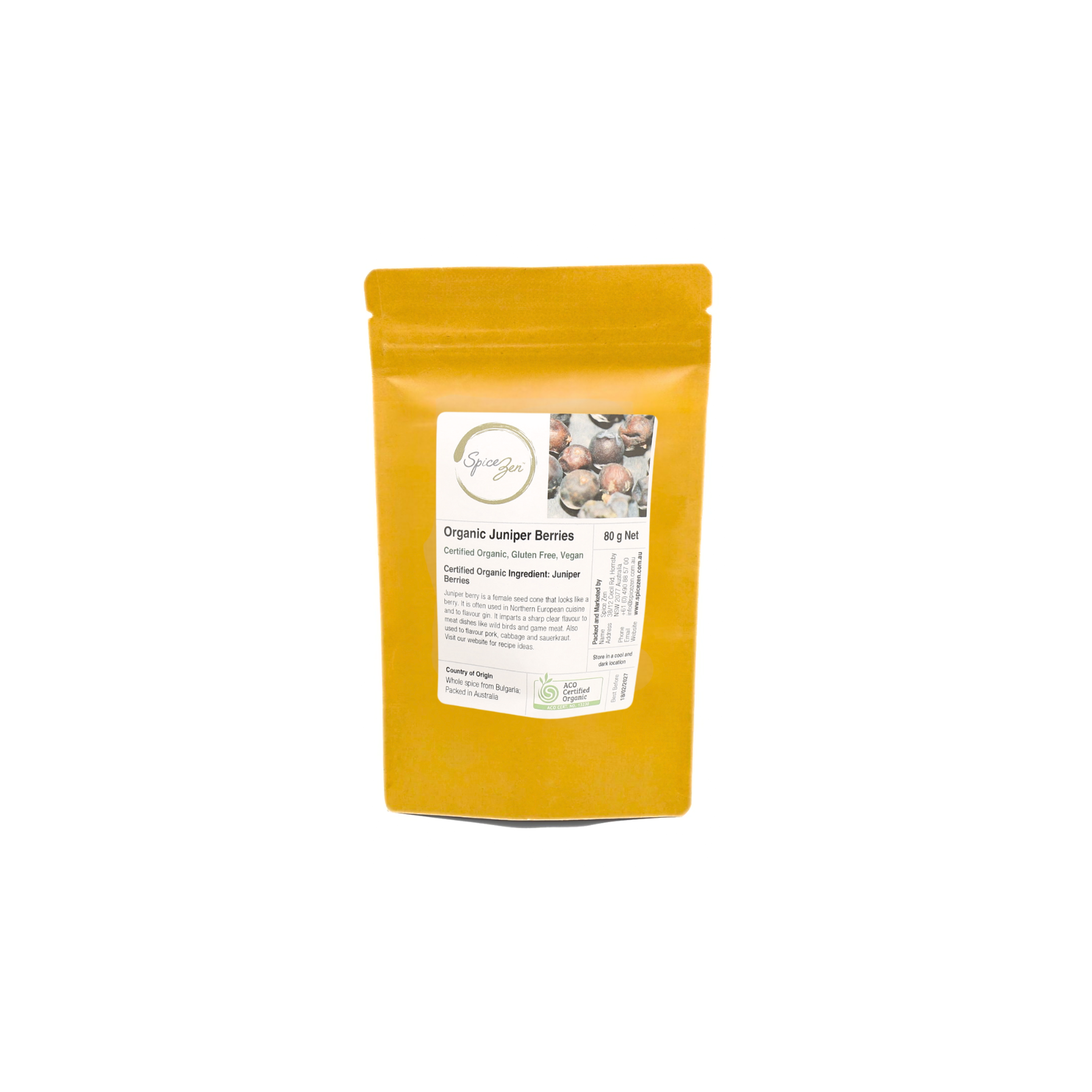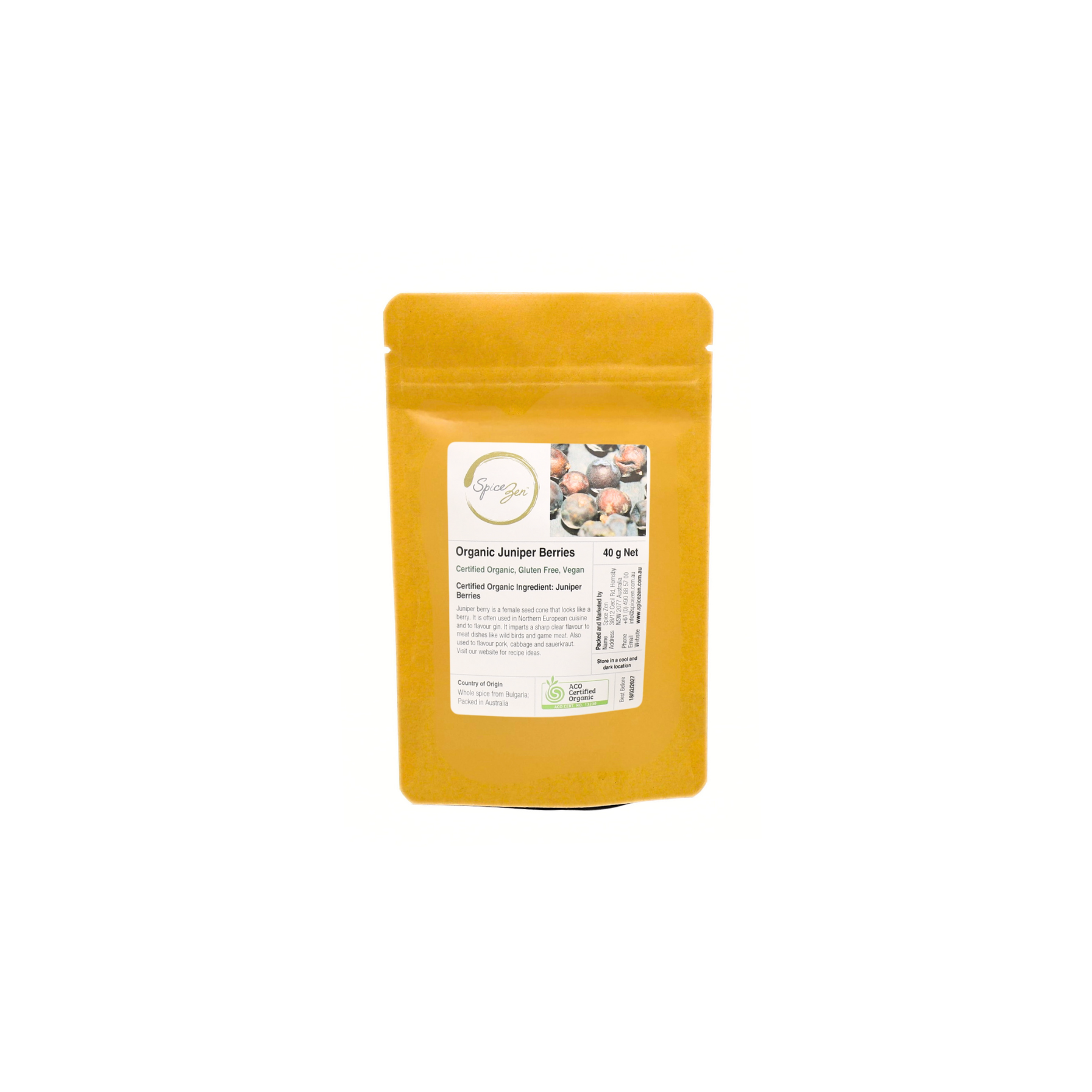 Hand packed in small batches at our gluten-free Sydney facility, our certified organic juniper berries are vibrant, oil-rich and deeply aromatic.