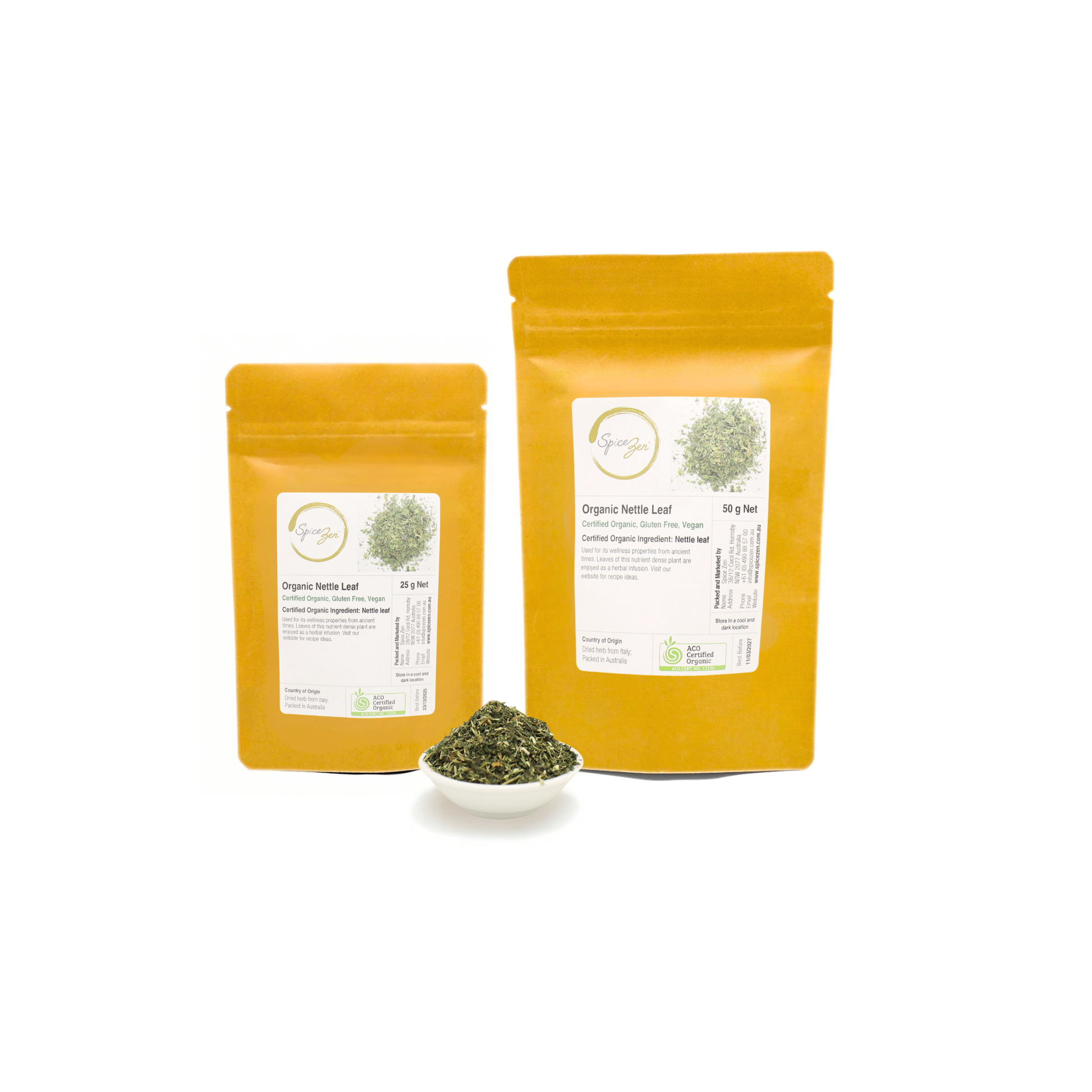 Spice Zen’s certified organic Nettle leaf is sourced from organically grown plants and gently dried to preserve its colour, structure and character. When brewed, it produces a clear green infusion with a clean, grassy aroma, mild vegetal sweetness and a smooth, neutral finish.