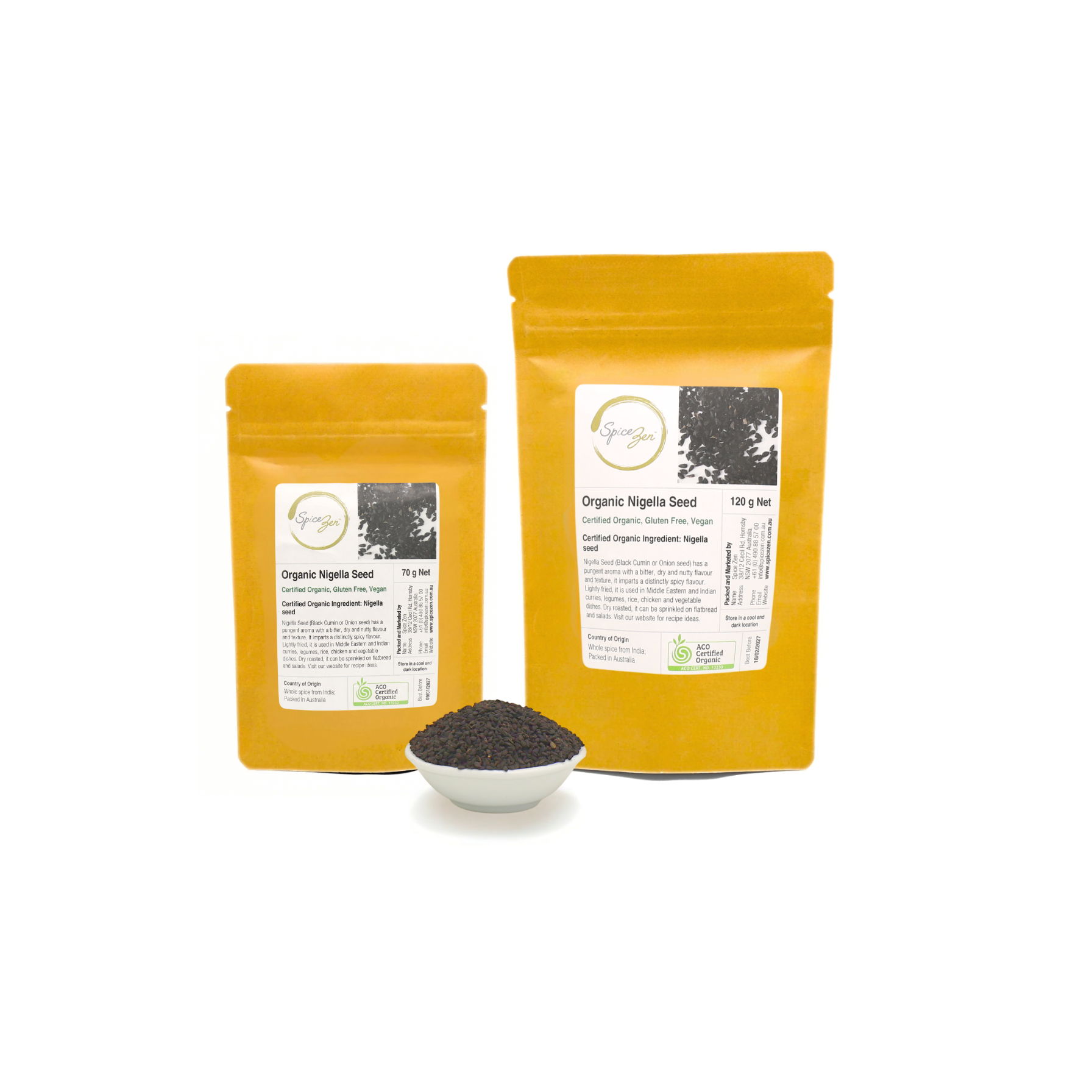 Spice Zen’s Certified Organic Nigella Seeds are carefully sourced, and quality checked to preserve their natural aroma and texture. When lightly crushed or toasted, the seeds release a pungent fragrance reminiscent of oregano, black pepper and onion, followed by a dry, nutty bitterness that lingers gently on the palate.