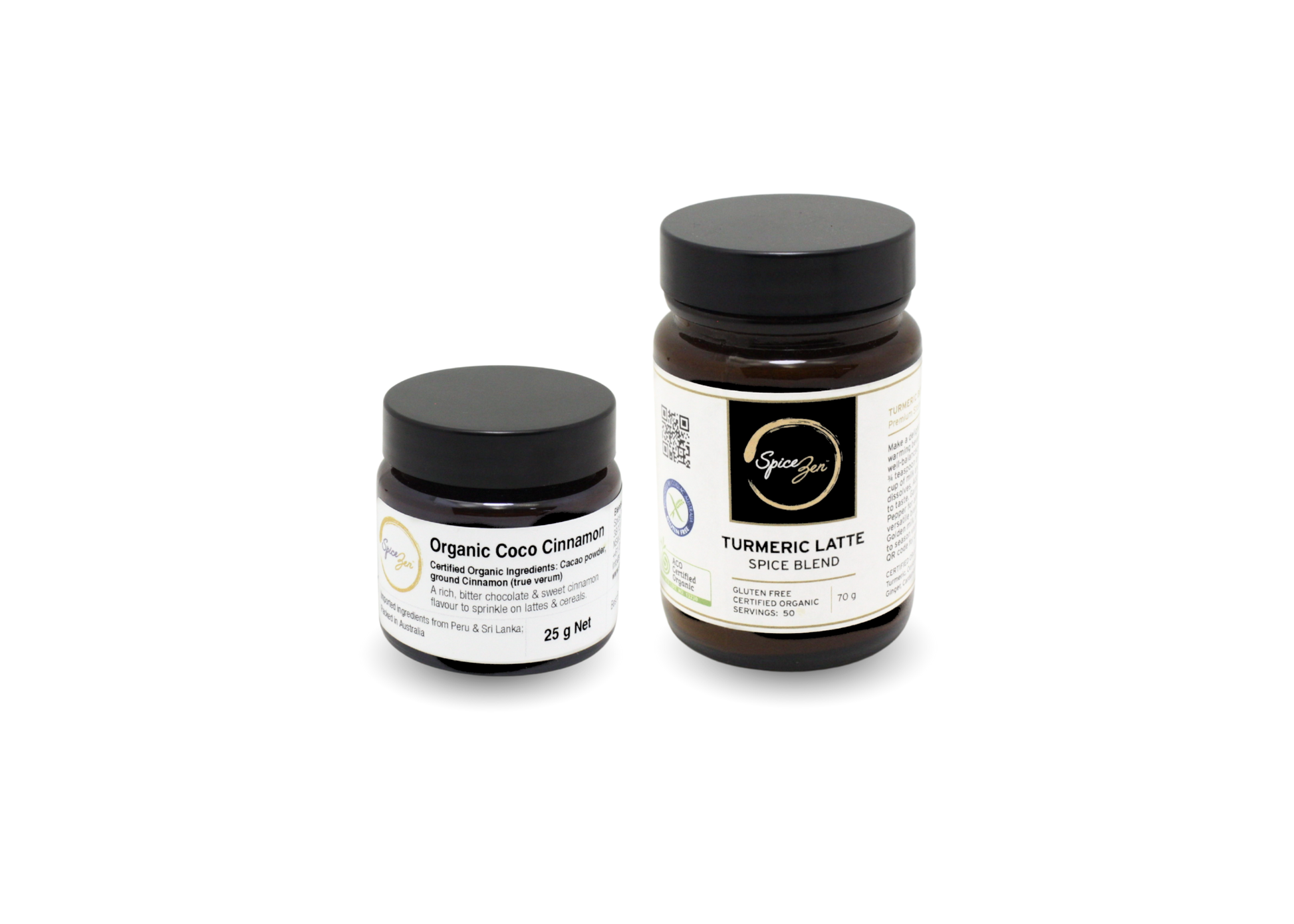 Finely stone-milled high-curcumin turmeric, ginger, true Ceylon cinnamon, green cardamom and black pepper, a rich, aromatic blend that creates café-style golden lattes, iced turmeric brews and wellness-forward recipes.